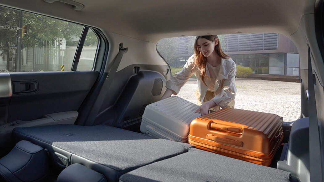 EV3는 E-GMP 플랫폼의 '저배터리 배치' 방식을 채택해 차량 바닥에 배터리를 배치했습니다. 이를 통해 무게 중심을 낮추고 실내 공간 활용성을 높였습니다. 또한 '*롱휠베이스' 설계로 실내 공간이 넓어지고 안정성도 향상되었습니다.