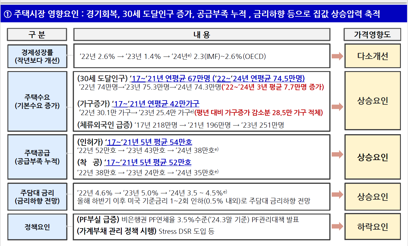 • 2020~2024년 5년간 주택 수요량 대비 공급 부족량은 약 86만 가구로 추정