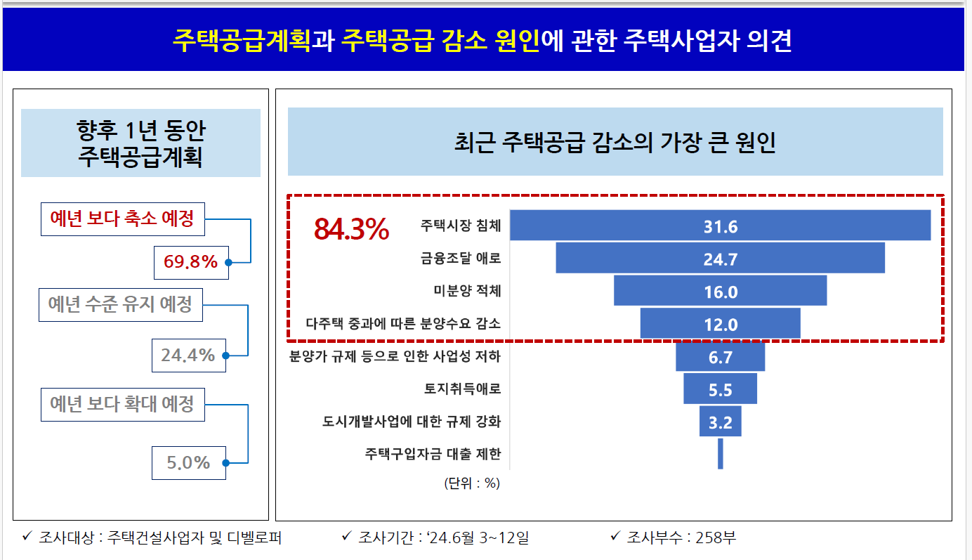 • 실효성 있는 정부 대책 시급: 건설비 상승, 금리 인상 등 복합적 요인으로 공급 부족 지속
