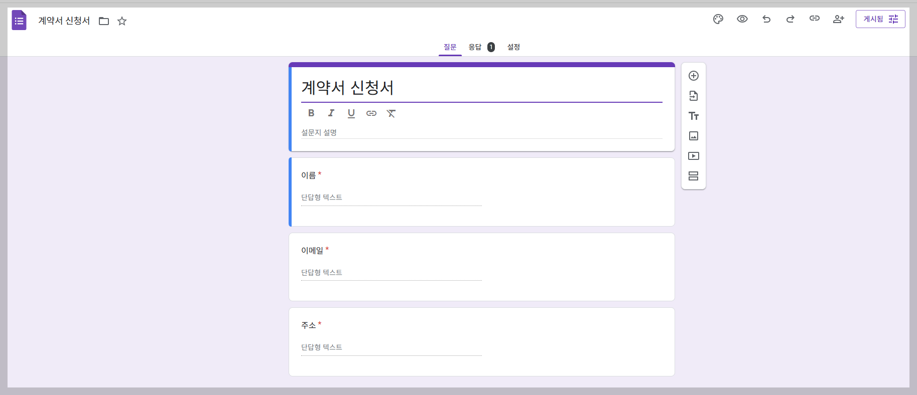 - Google Form – “계약자 이름 · 이메일 · 주소” 세 질문